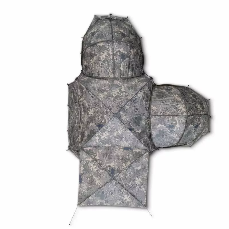 The shape of the Gazebo Camo Pro and the Pods can be varied to fit the available space at the fishing spot – connecting the capsules at right angles to adjacent sides, or opposite each other