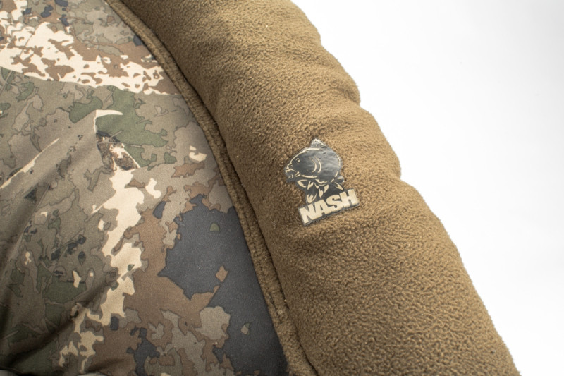 The famous Indulgence Moon Chair comfort now with an updated padded microfiber fleece trim and an embossed Indulgence logo around the luxury peach skin coated padding in unique Nash camo.