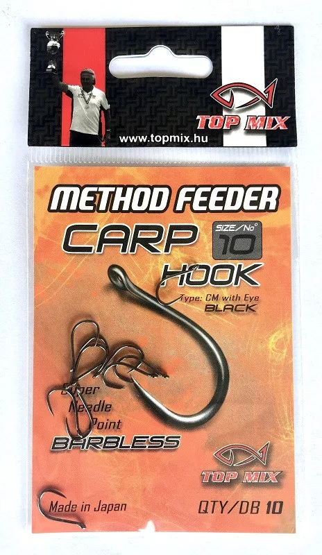 Top Mix Method Feeder Carp 10 Eyed, Barbless Carp Hook 10pcs