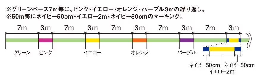 » Marking Fluo Green color for perfect visibility: The bright Fluo Green colored, marked line provides excellent visibility in both daylight and twilight conditions. The markings also help with accurate depth keeping and visual detection of bites.