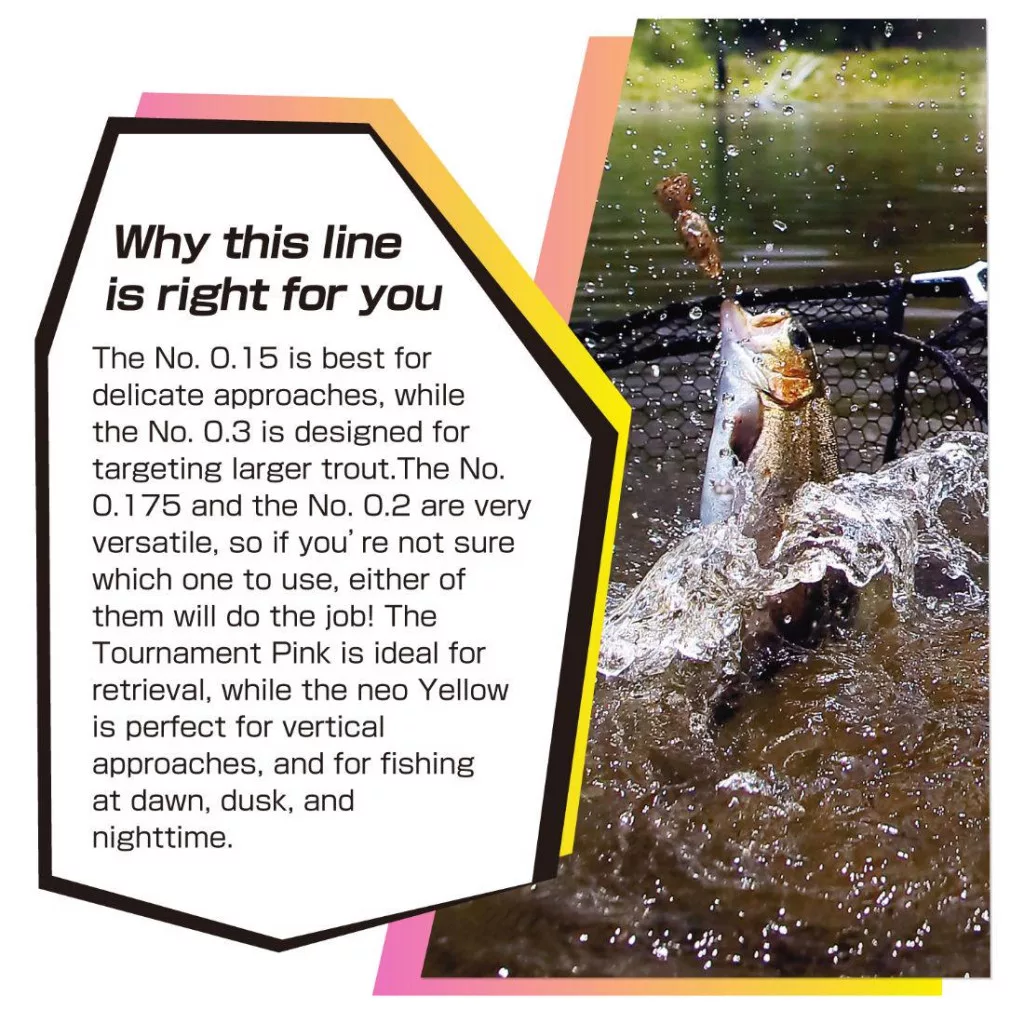 Discover a new dimension of trout fishing with the Varivas Super Trout Area PE X4 Tournament Pink braided main line!