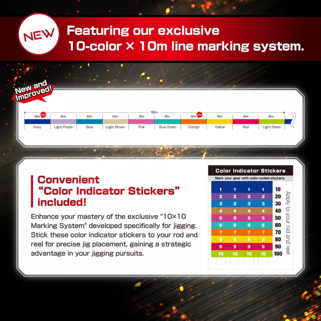 The special 10x10 color marking system helps to accurately determine the depth with changing colors every 10 meters and one-meter markings. This is essential for jigging fishing, where the lure must be lowered precisely to the desired depth, so you always know exactly where you are in the water column.
