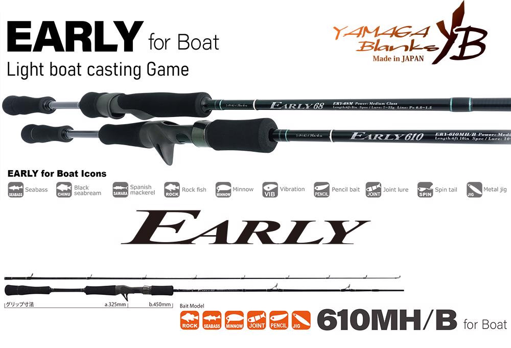 The EARLY for Boat model was developed for the enjoyment of lightweight offshore casting, with target species including bream, perch, smaller Blue Runners, flatfish, and rockfish.
