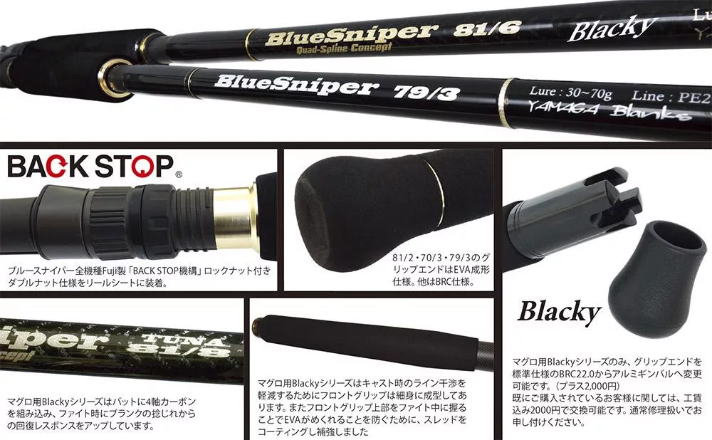 Yamaga Blanks Blue Sniper 81/6 Blacky Tuna 2,48m 30-110gr 2 Piece Spinning Rod detailed description